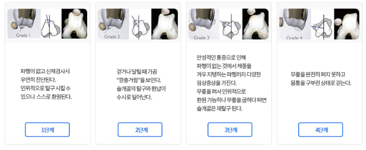 • 슬개골이 완전히 자리에서 벗어남
