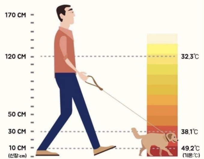 반려견은 우리보다 땅과 가까이에서 걷기 때문에 몇 배나 더 뜨거움을 느낀답니다.